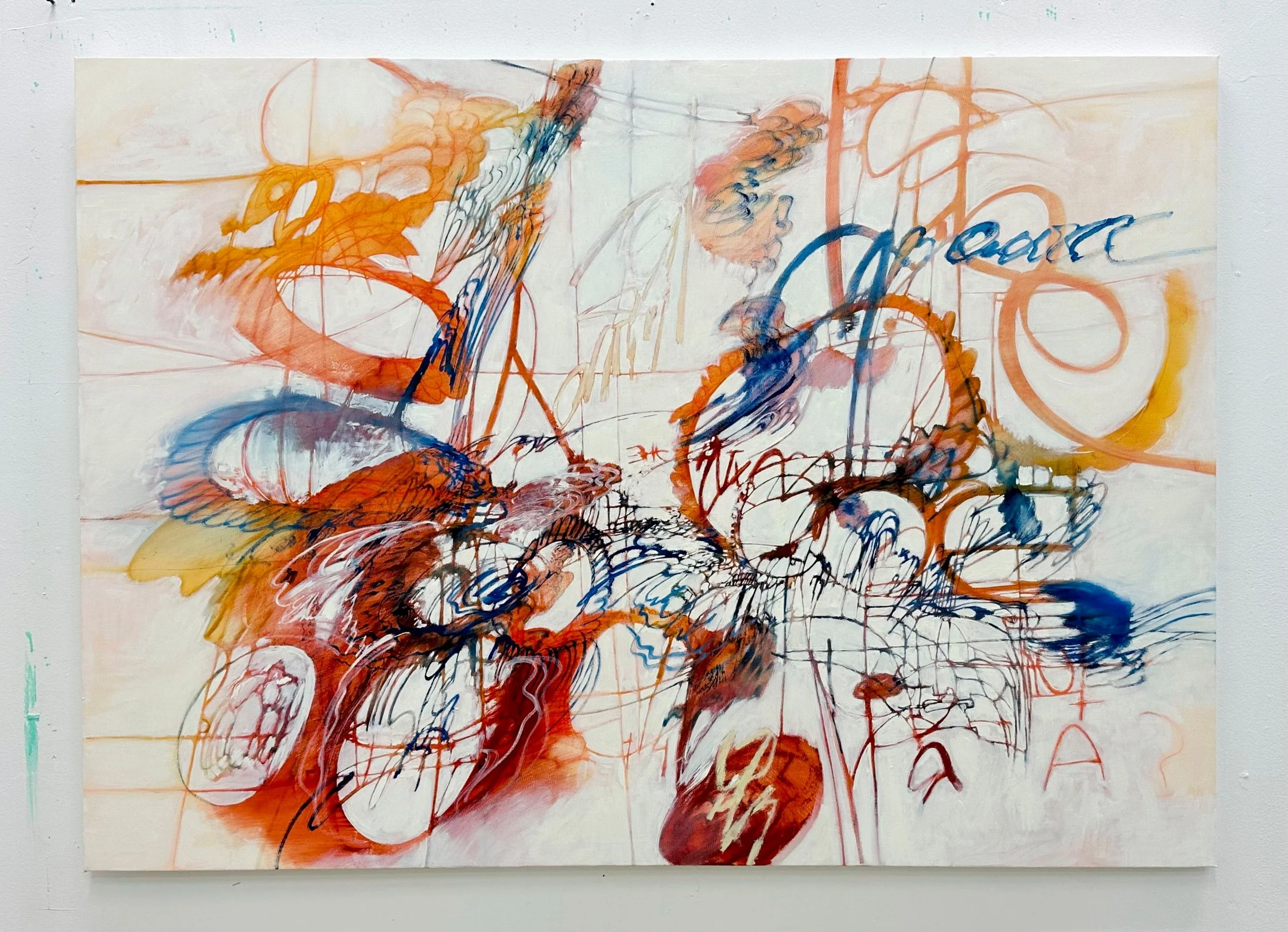 Framme i ateljén är väggarna fulla av Thorells enorma tavlor, som snart ska visas i en separatutställning på Loyal Gallery i samband med Market Art Fair. På golvet ligger gamla mattallrikar, snus, halvfulla färgburkar, papper fläckat av färg. Tavlorna på väggen har ett sug, en kryptisk känsla som får mig att tänka på automatisk skrift, på internet, algoritmer och ett slags rörelse av universum, av resor. De handlar mycket om det kreativa tillblivandet, berättar han. Hur idéer går från lösa tankar till att kristallera sig, gå genom metamorfoser och bli till verkliga tankar, projekt, tavlor. Utställningar.