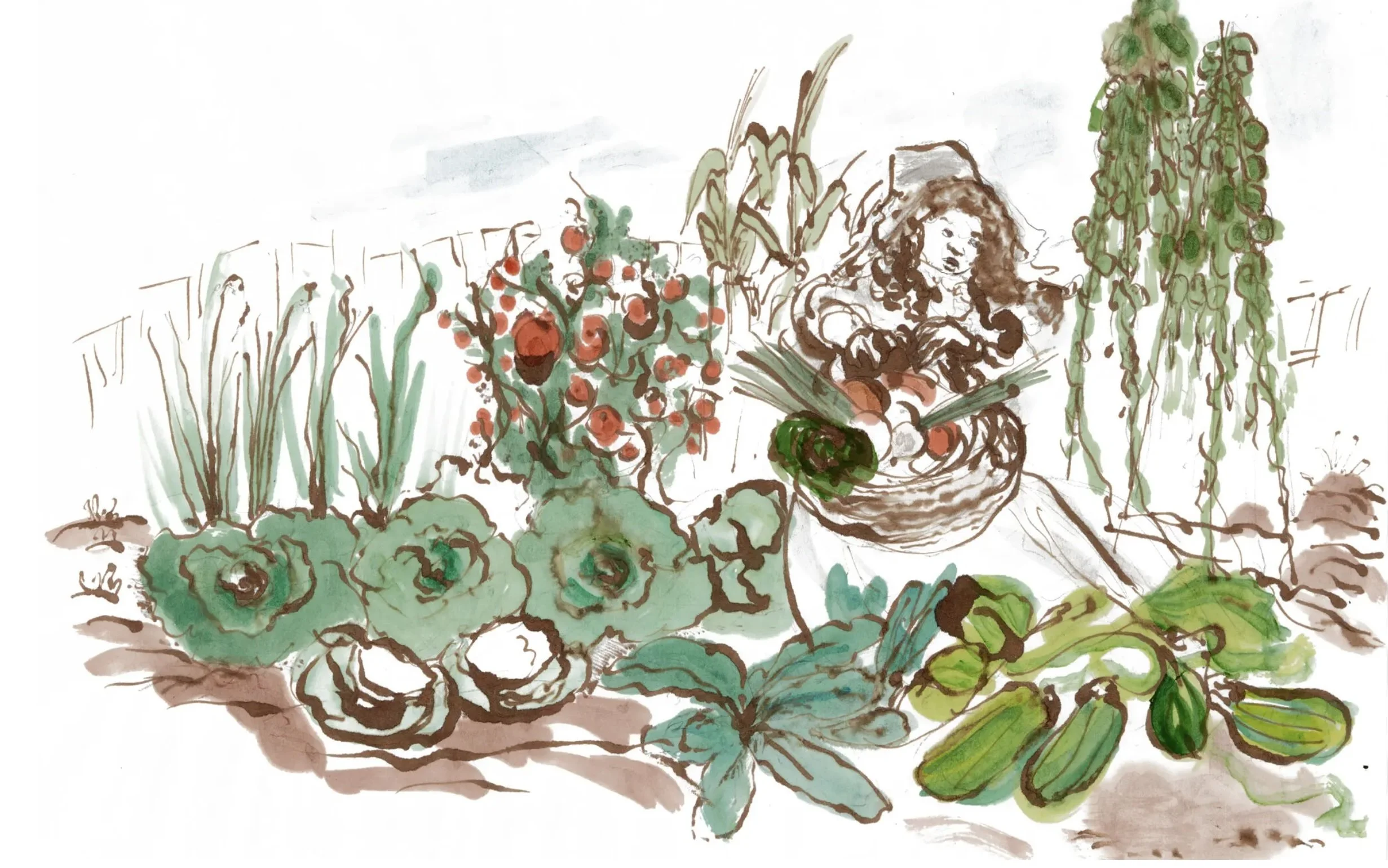 ”K Is for Kitchen Garden,” från An Encyclopedia of Gardening for Colored Children. Illustration: Kara Walker.